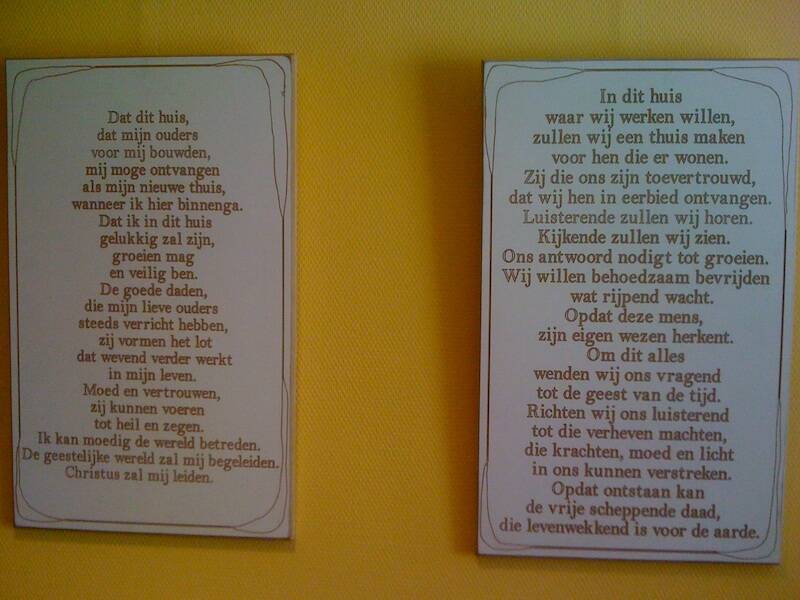 Op 7 september 2012, vlak voor de officiële ingebruikname van het Droomhuis is de grondsteenspreuk geschreven en op plechtige wijze officieel geplaatst in een mooie koperen koker boven het plafond van de entree van het Droomhuis.